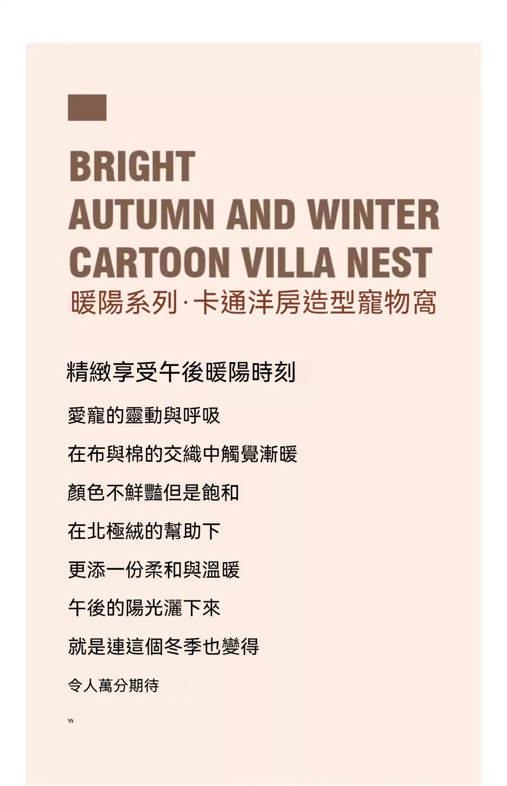 【給毛孩一個真正安心的家 】封閉式冬天保暖貓狗屋,經典升級款高品質寵物別墅,三面包圍萌屋設計,打造專屬安全小天地。封閉結構有效遮光、防風保暖,特別適合秋冬與冷氣房使用,讓貓咪狗狗睡得更安穩。內層選用親膚法蘭絨,柔軟不刺激、耐磨耐用,長時間使用也不易變形。可拆洗設計,清潔方便又衛生,無論是貓咪還是小型犬,都能擁有被溫柔包覆的幸福感,真正做到「暖暖相伴,安全好睡是關鍵」。